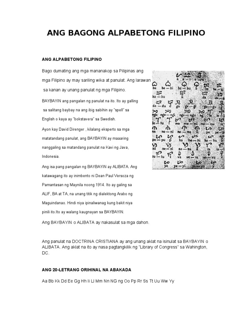 The modern Filipino alphabet Filipino. Bagong Alpabetong Pilipino Naramdaman ang pangangailangan sa radikal na reoryentasyon ng pagpapaunlad sa Wikang Pambansa noong pumapasok ang dekada 70. Alibata ng alpabetong pilipino.