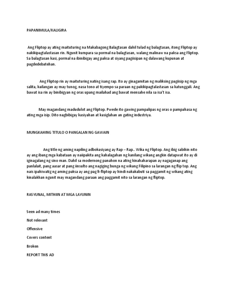 I Am Filipino. Fliptop at balagtasan pagkakaiba pdf. Flip Top Makabagong Balagtasan.