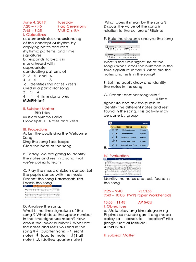 Dll G6 Q2 Week 6 All Subjects Mam Inkay Peralta Pdf Rhythm Evaluation