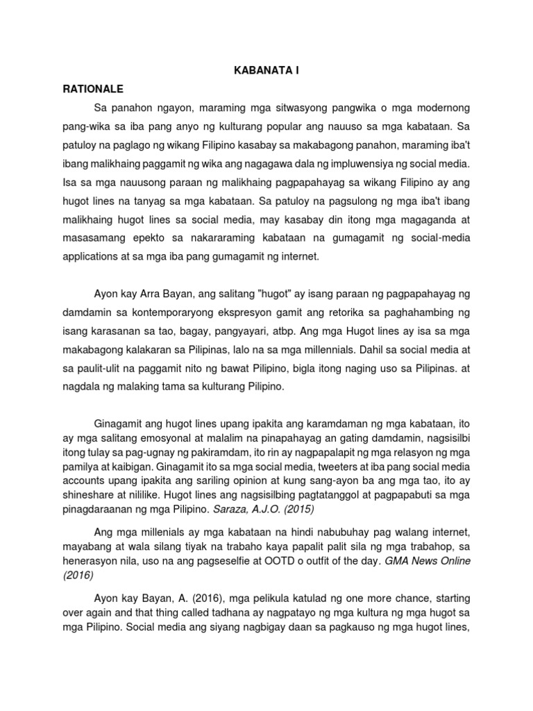 Walang kasabihan ni rizal sa isipan kundi. Hugot Lines ukol sa Kabataan sa. Wikang Filipino sa Makabagong Panahon.