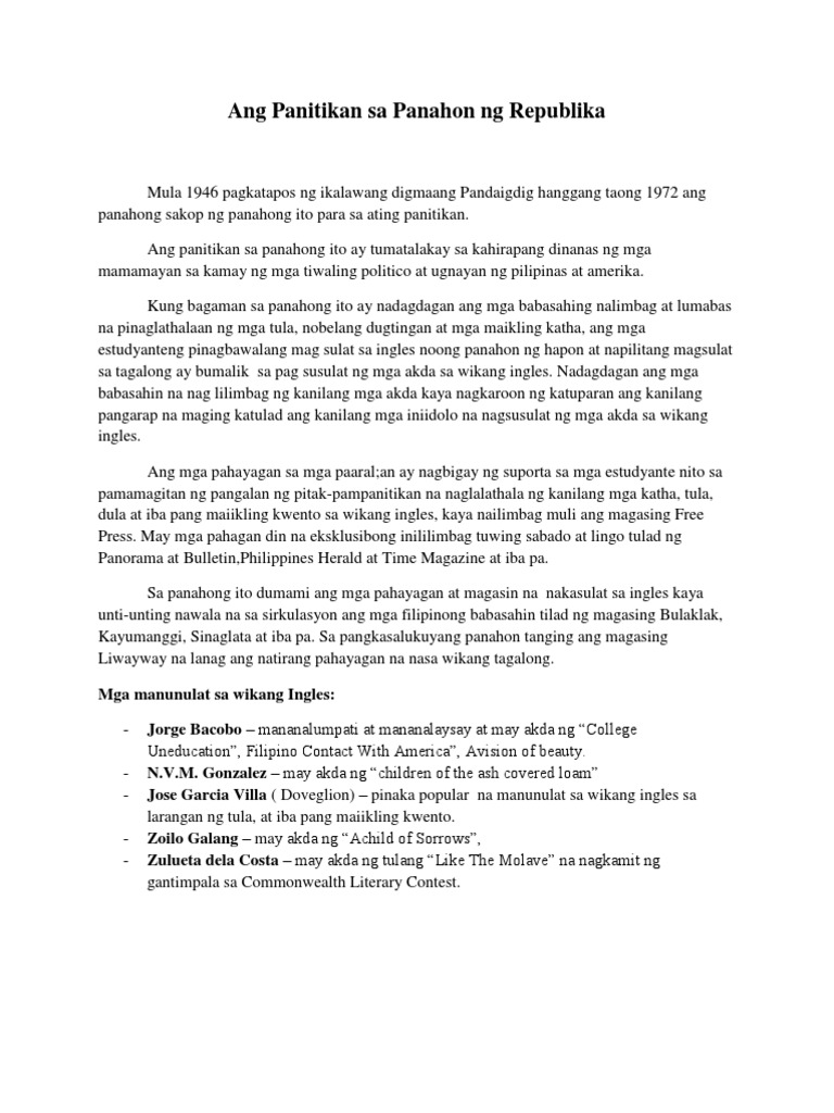 Ang Panitikan Sa Panahon Ng Republika Pdf